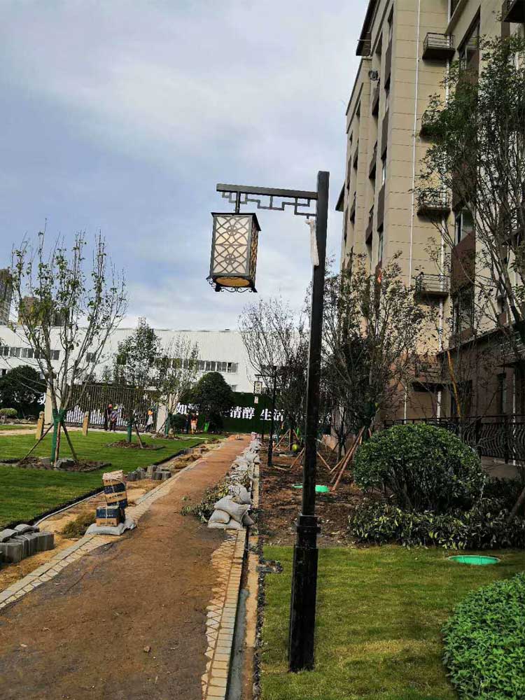 簡介—— 寶雞碧桂園庭院燈草坪燈項(xiàng)目是我們公司2018年7月完成的項(xiàng)目,燈具采用的是純黑方管燈桿,單挑臂造型光源,復(fù)古典雅,主體顏色與樓體顏色相呼應(yīng),在造型上和視覺上給人一種一體的美感。