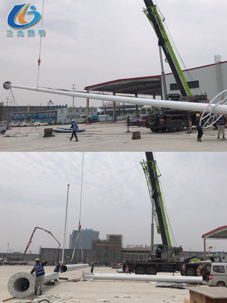 3.高桿燈頂部配設(shè)避雷針,所有連接部件為不銹鋼螺栓負載能力1000公斤。